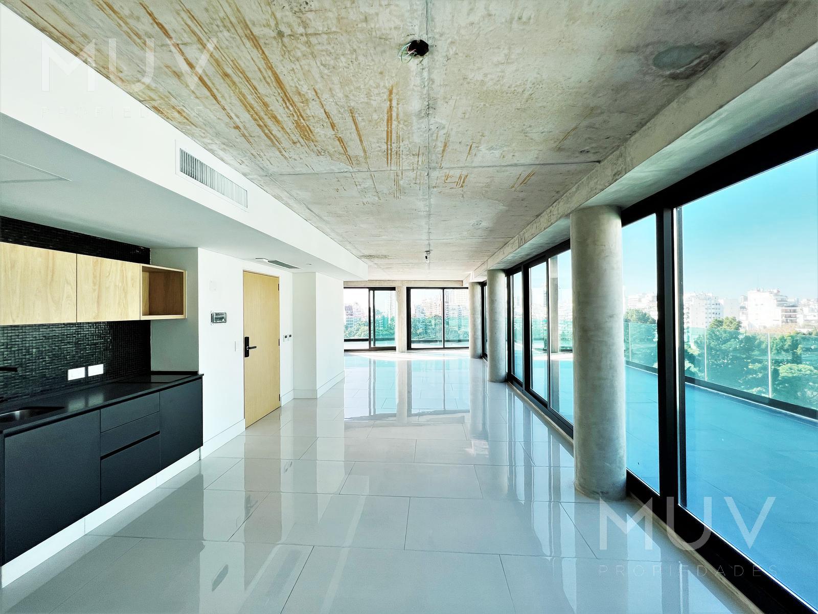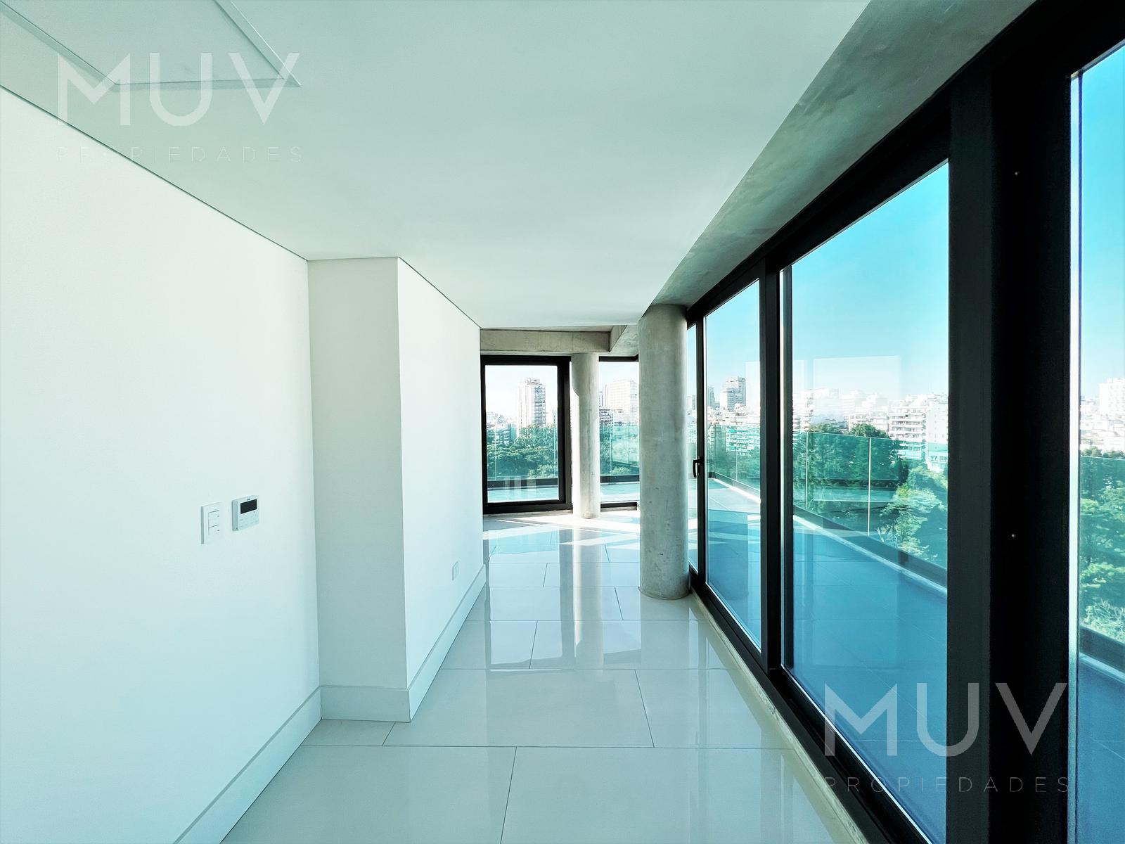 La unidad esta ubicada en esquina, todo con vista al frente y amplios ventanales. Increíble terraza única que rodea el departamento. Terminaciones de calidad y diseño. Plantas flexibles con posibilidad de divisiones. Cocina integrada con muebles bajo mesada y alacena. Baño completo y toilette de recepción ambos revestidos con venecitas. Pisos de porcelanato, cerramientos doble vidrio DVH, aire acondicionado y calefacción central con equipos VRV y termostatos individuales para regular la temperatura. Cerradura digital. Se vende con excelente Renta hasta diciembre 2028. Nota: Las medidas y superficies son aproximadas. Las definitivas surgirán de la escritura traslativa de dominio.