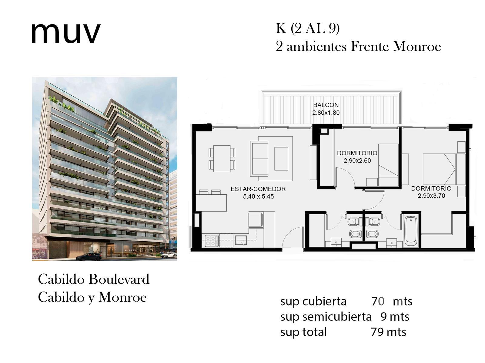 Se deja constancia que los m2 son aproximados, al igual que las medidas parciales, y están sujetos a verificación y/o ajustes, porque representan el anteproyecto sujeto a aprobación. El precio del inmueble puede ser modificado sin previo aviso. Por tratarse de un inmueble por construirse, los detalles de terminación y la fecha de entrega están sujetos a revisión. Las descripciones y renders publicados son meramente ilustrativos y tienen carácter no contractual. Las unidades publicadas están sujetas a disponibilidad. MUV Propiedades actúa solamente en carácter de comercializadora de los inmuebles ofrecidos.