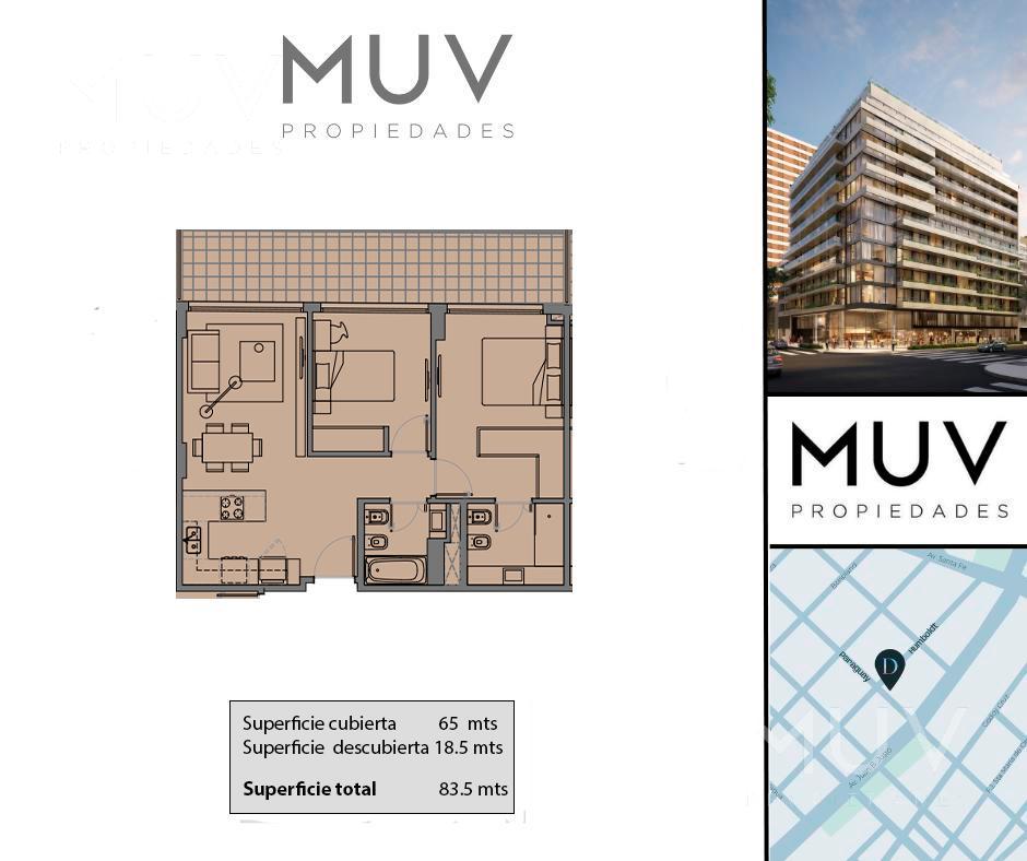 El edificio cuenta con amenities de primera, tales como Gimnasio con área fitness y equipo de última generación, SUM, área de parrillas, Laundry, Piletas descubiertas con Solarium, Bike Parking, Smart Lockers, Seguridad 24hs. Cocheras disponibles en el edificio. Entrega pautada para el último trimestre de 2027. Comercializa Muv Propiedades. Desarrolla y construye ADN Developers.