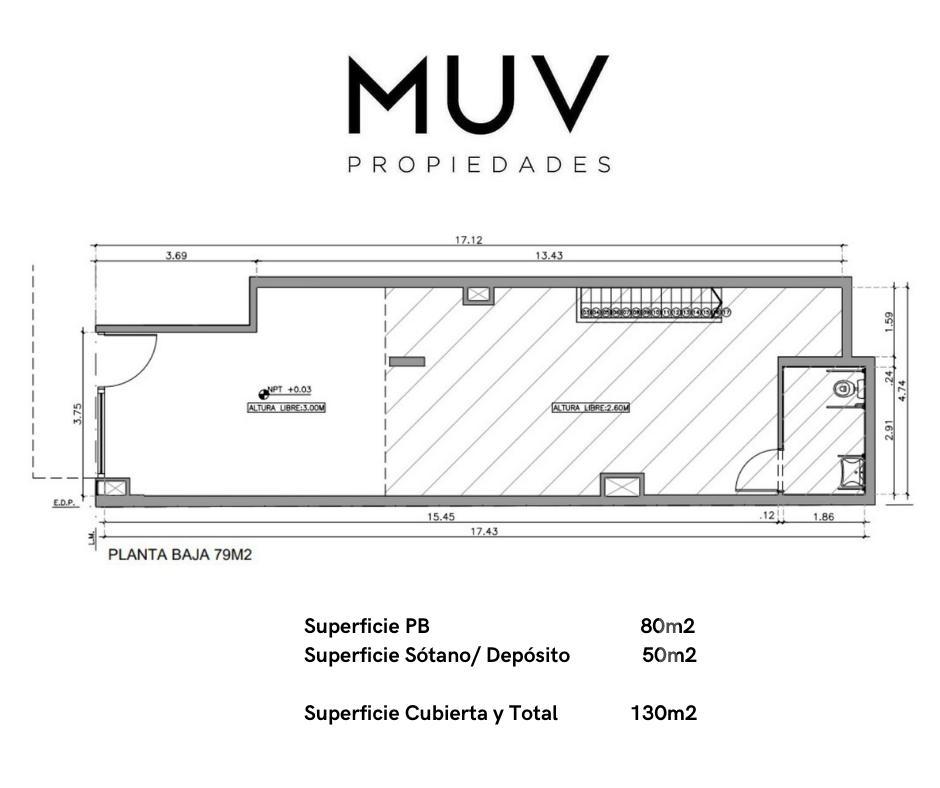Vidriera de 3.75 mts. Planta de 80 mts con amplio baño. Sótano / depósito de 50 mts. Bajas expensas. Se entrega con inquilino y renta. Nota: Las medidas y superficies son aproximadas. Las definitivas surgirán de la escritura traslativa de dominio.