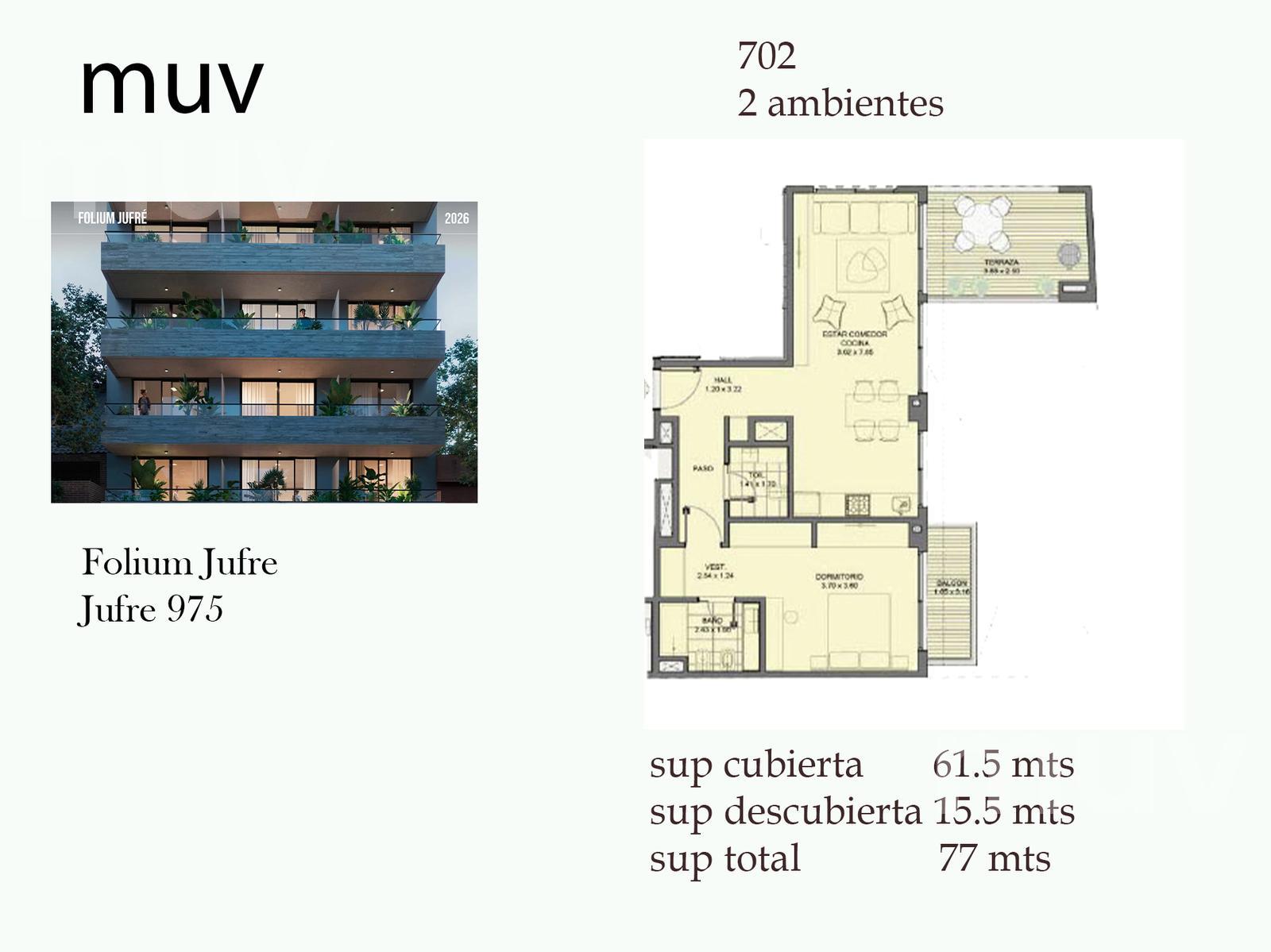 Folium Jufre se encuentra ubicado de las locaciones más buscadas por la conexión perfecta entre subtes, colectivos, trenes y ciclovias, además de estar a pasos de la vibrante escena nocturna de Palermo.